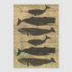 Basé sur des dessins anciens de baleines, il s'agit d'un collage d'art rustique de baleines avec baleines, texte Moby et carte ancienne dans l'arrière - plan.