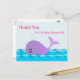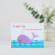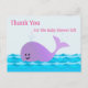 Une mignonne fille thème baleine et baby shower nautique merci carte postale. Customisez ce modèle comme vous le souhaitez. Cette conception est coordonnée avec le thème baby shower "Whale It's A Girl" de la ménagerie de Night Owl. Art vectoriel original par Night Owl's Menagerie, 2015.