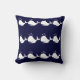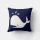 Baleines rayures BLANC sur MARINE BLEU COUSSIN partie du décor océanique baleines BLANC sur MARINE BLEU COUSSIN sur un côté et la MARINE et blanc bande sur le dos.