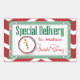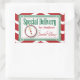 Livraison spéciale du pôle Nord étiquette cadeau Stickers.Design rouge et vert festif avec motif zigzag en chevron rouge et blanc, Ornate frise, une étiquette ronde avec "Poste prioritaire du pôle Nord", Espace pour le nom de l'enfant (laissez vide si vous voulez écrire des noms différents sur les autocollants) et signé par le Père Noël lui-même!