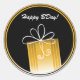 Élégant Sticker cadeau moderne "Happy Anniversaire" personnalisable avec boîte cadeau brillante. Vous pouvez modifier, ajouter ou supprimer du texte, modifier la taille du texte, la police et la couleur.