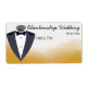 Aidez les invités à se souvenir ou à apprendre les noms d'autres invités mariages avec un tag de nom étiquette personnalisé avec marié tuxedo art et une aquarelle or et arrière - plan blanc. Personnalisez les champs de texte, supprimez le texte ou modifiez-le à l'aide de l'outil Modifier la conception pour sélectionner la couleur, la taille et le style de police de votre choix. La taille et la conception du étiquette d'expédition permettent d'ajouter le nom du participant à la réception de mariage, à un dîner de fête de répétition ou à d'autres événements mariages.