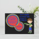 Commencez votre fête avec une invitation laser pour ce garçon d'anniversaire spécial. Il s'agit d'une invitation éclatante et peut être utilisé pour une soirée laser tag, ou même une soirée de paintball. L'Arrière - plan est noir. Il a un garçon aux cheveux bruns tenant un pistolet laser vert dans la main. De l'autre côté de l'invitation se trouve une balise circulaire avec des arêtes pointues. Personnalisez l'invitation avec vos informations de fête. Découvrez d'autres produits de cette collection pour ajouter la touche parfaite à votre fête. ©Illustrations JW