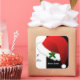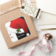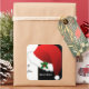 Autocollants de marque-cadeau de vacances Un chapeau de Père Noël taillé en fourrure mignon en rouge est fixé sur un blanc et noir avec une étiquette-cadeau manchette simple à épingle Champagne-Tan. Texte A et A. Un autocollant de grande taille est affiché. Customiser plus loin ou acheter tel quel.