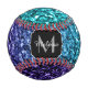 Personnalisez le ballon de baseball de sport féminin à la mode avec votre initiale et votre nom. De belles parties scintillant brillantes en bleu foncé et bleu clair scintillent les couleurs d'été bleu aqua sombre. Nous utilisons des photos de mousseux bleus, pas la parties scintillant réelle! Faux scintille !