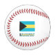 Le baseball personnalisé montre le drapeau bahaméen et le mot BAHAMAS en dessous. Ci-dessus, ajoutez votre nom, en lettres bleues, pour une touche personnalisée ou un cadeau. Amusez-vous à des réunions d'amis ou de famille et à des événements de club ou de groupe de voyage.