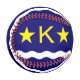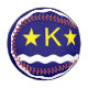 Baseball avec design avec drapeau de Kinshasa, capitale de la République Démocratique du Congo, drapeau bleu avec vague blanche, deux étoiles dorées et lettre "K" au centre