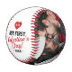Cute 1st valentine's day baseball gift featuring a red love heart with you and your partners initials, the text "our first valentines day!", and the year. Plus 2 photos for you to customize with your own to make this an extra special boyfriend gift.