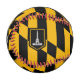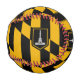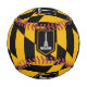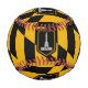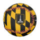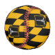 Baseball with flag of city of Baltimore, Maryland; black and yellow flag with an illustration of Battle Monument