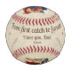 Celebrate the special bond with Dad with this unique personalized photo baseball. Featuring the message 'From first catch to forever, I love you, Dad,' alongside your 2 photos, this custom keepsake is perfect for Father's Day, his birthday, or just to show your appreciation. It's a wonderful way to immortalize those precious baseball memories. Easily customize with your own text and two favorite pictures to create a truly unforgettable gift that he'll treasure for years to come. A perfect display piece for any baseball fan Dad!