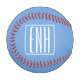 Balle De Baseball Gras moderne 3 initiales Monogramme | Bleu doux