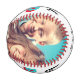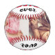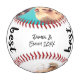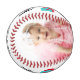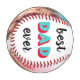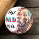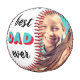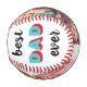 Célébrez le meilleur papa et le meilleur fan de baseball avec ce baseball personnalisé avec 2 photos de ses enfants et "DAD" écrit dans une amusante typographie rétro rouge et turquoise.
