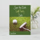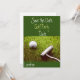Balle de golf avec putter sur invitation en herbe verte