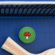 Une boule de ping-pong avec un champignon des deux côtés. Le champignon a un casquette rouge de dôme et des taches blanches. Il a dessiné dans un style simple de bande dessinée.
