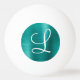 Balle De Ping Pong Monogramme blanc Turquoise en métal brossé chic