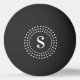 Boule de ping-pong noire avec votre premier monogramme à l'intérieur d'une bordure radiale rétro.
