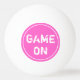 Boule de ping-pong montrée en rose/blanc chaud avec texte; Jeu On. Customisez cet objet ou achetez tel quel.