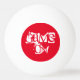 Boule de ping-pong en rouge et blanc avec texte ; Jeu On. Customisez cet objet ou achetez tel quel.