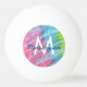 Pink and turquoise blue cravate-dye motif ping-pong boule avec nom imprimé sur mesure et texte monogramme pour les amateurs de ping-pong ou de bière !