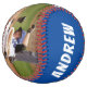 2 Photo Softball Nom du joueur Team Blue and White. Vous pouvez créer votre propre softball unique avec votre nom, numéro de joueur, nom d'équipe et 2 photos. Couleurs bleues et blanches. Une idée cadeau ou un souvenir pour les joueurs de baseball. Un cadeau d'anniversaire ou un cadeau de Noël.