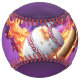 Baseball en feu. Design puissant et dynamique, avec un baseball blanc brillant et une couture rouge frappante au centre, entouré d'un arrière - plan violet intense et lumineux. Le baseball semble entouré de flammes éblouissantes dansant dans un mélange fascinant d'orange, de jaune et de bleu. Ces couleurs vives donnent à l'image une énergie explosive et attirent immédiatement l'attention du spectateur. Les flammes semblent non seulement envelopper le baseball et la chauve-souris, mais créent aussi une atmosphère pleine d'action et d'intensité. Ils symbolisent la passion et l'esprit de compétition du sport de baseball.