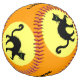 Ce softball personnalisé a des chats noirs éffrayants avec les yeux verts et les dos voûtés sur un arrière - plan jaune et orange vif.