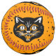 Ce softball sur mesure a un vieux classique joyeux visage de chat noir sur un arrière - plan orange couvert de minuscules étoiles noires.