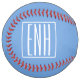 Balle De Softball Gras moderne 3 initiales Monogramme | Bleu doux