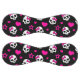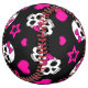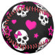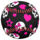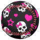 Des crânes déchirés entourés de coeurs et d'étoiles dans un rose vif contre un arrière - plan noir.