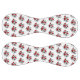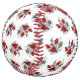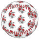 Contour, mechanical crescent moon with gears, decorated with red roses with black spiked stems and leaves on white background. Steampunk