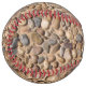 Photo détaillée et décorative de cailloux sur sable. Brut et calme.