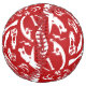 Les os Dinosaures rouges et blancs répétant le motif! Les dinosaures présentés dans cette conception comprennent : Tyrannosaurus Rex, Allosaurus, Parasaurolophus, Tricératops, Brachiosaurus, Spinosaurus et Velociraptor.