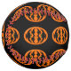 Ce softball impressionnant est orangé d'un ovale avec six corneilles dedans. Chaque corbeau a des yeux jaunes avec des élèves noirs et des ailes étirées. Les corbeaux volent vers l'autre formant une forme ovale. L'arrière - plan est noir.