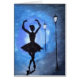 Le joli tableau de Rashmi présente une ballerine en silhouette, dansant au bord des lampadaires et aux somptueuses nuances de bleu. La carte parfaite pour toute occasion !