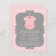 Une petite fille est en route pour faire ses débuts spéciaux ! Cette invitation au baby shower moderne et élégante à thème de ballerine est accompagnée d'un mignon petit maillot de bébé avec une jupe tutu et un ruban simple. Un motif classique en zigzag de chevron rose pastel pour les arrière - plans. Une invitation douce et coriace pour les petites filles. Personnalisez avec vos détails baby showers en texte rose et blanc sur le arrière - plan gris.