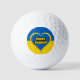 Golf balls with the flag of Ukraine, heart in the Ukrainian colors, and text saying "Glory to Ukraine" in Ukrainian