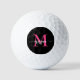 Balles De Golf Monogramme élégant moderne rose chaud noir