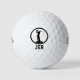 Pour lui, le design d'une balle de golf attrayante présente une silhouette de golfeur mâle en noir, encadrée par un cadre circulaire également en noir. Des initiales de style gras complètent le modèle de conception. Les couleurs de ce design peuvent être modifiées. Autres couleurs disponibles.
