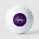 Des balles de golf pour dames avec un nom de script blanc personnalisé sur un riche arrière - plan violet foncé avec un monogramme violet clair. Parfait pour ajouter une touche personnelle et élégante à votre jeu de golf.