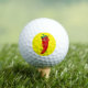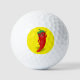 Un personnage de dessin animé rouge et poivre chaud. Design original avec arrière - plan jaune. Boules de golf personnalisées. Idée cadeau.