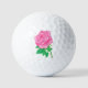 Une balle de golf avec une image d'une belle rose rose. Le fond et l'image peuvent être personnalisés. Du texte peut être ajouté. Œuvre originale de W.B.