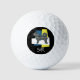Sibérie Husky mignon chien silhouette grille abstrait motif jaune et bleu avec arrière - plan tricolore dans un cercle noir. Personnalisez avec vos trois initiales en blanc sous la forme d'un chien. Parfaites pour l'amoureux des chiens de votre vie ou le père qui aime le golf, ces balles de golf sont la façon parfaite de montrer votre passion.