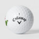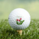 Ces boules de golf portent un joli nom vert scripté sur un ensemble de fleurs de tulipes rouges.