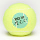 Boules de tennis uniques avec script élégant "Kiss My Ace" en bleu turquoise aqua turquoise et noir schéma de couleurs. Toutes les couleurs et les polices peuvent être éditées avec l'éditeur modèle avancé pour créer un cadeau de tennis féminin et girly drôle avec une esthétique moderne pour votre joueur de tennis préféré, coéquipier, entraîneur ou directeur de club.