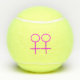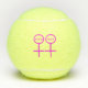 Ce superbe ensemble de balles de tennis est conçu pour les lesbiennes. Il comporte deux symboles féminins roses côte à côte. L'arrière - plan est noir et il y a du texte rose personnalisable à l'intérieur de chacun des symboles pour mettre des noms.
