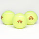 Ce pack impressionnant de balles de tennis présente l'image art numérique d'un mignon couple lesbien en pain d'épice. Les femmes en pain d'épice ont de jolis cils et portent du rouge à lèvres. Ils ont des jupes et des sommets franges. Les franges sur leurs vêtements correspondent aux couleurs du drapeau de la fierté. Tous deux ont un grand sourire. Il y a un coeur en pain d'épice au-dessus du couple qui montre leur amour l'un pour l'autre. Il y a de l'écriture blanche à l'intérieur du coeur qui dit "faite pour l'autre".