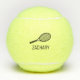 Boules de tennis personnalisées imprimées avec nom ou texte personnalisé dans une police simple, classique, moderne et simple monogramme de raquette de tennis. Ils sont parfaits pour un cadeau d'anniversaire de joueur de tennis ou un décor de soirée à thème de tennis ou des faveurs et sont utiles balles de pratique moderne monogrammed.