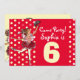 Pois rouges graphiques dansant ballerine filles invitation de la fête. Parfait pour invitation la ballerine préférée de votre fille à sa fête de danse d'anniversaire. Customisez avec vos propres détails. Uniquement conçu et illustré par Sarah Trett.