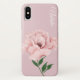 Joli coque iPhone X fait en rose ballet avec des graphiques d'une grande fleur rose avec tige verte. Personnalisez le texte blanc pour vous-même ou comme une excellente idée cadeau pour elle.