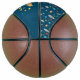 Basket-ball avec une illustration amusante de l'espace extra-atmosphérique. Cet article de sport a un motif spatial sur un panneau et un navire-fusée et des étoiles sur l'autre. Personnalisez avec un nom.